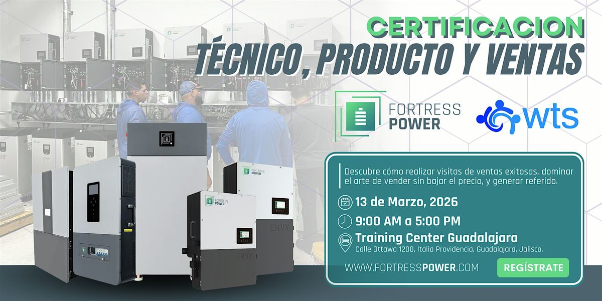 Participa en la Certificación de Producto y Ventas Fortress Power en Guadalajara, Jalisco, México. Aprende de la experta: Luisa Fernanda Medel, en un evento exclusivo para fortalecer tus conocimientos sobre energía solar y soluciones de almacenamiento junto a World Technology Supply.