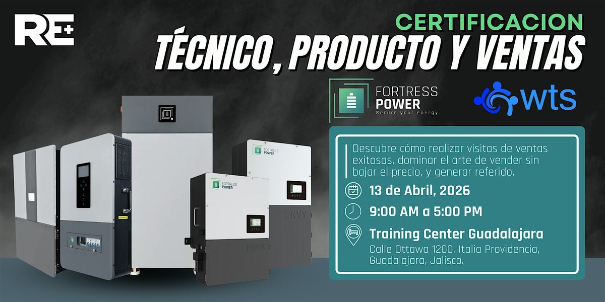 Participa en la Certificación de Producto y Ventas Fortress Power en Guadalajara, Jalisco, México. Aprende de la experta: Luisa Fernanda Medel, en un evento exclusivo para fortalecer tus conocimientos sobre energía solar y soluciones de almacenamiento junto a World Technology Supply.