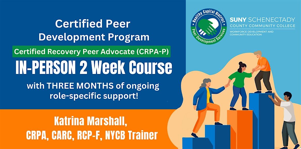 Healthy Capital District is offering courses for provisional certification for the role of Certified Recovery Peer Advocate (CRPA)! W e support you through the entire process and are dedicated to your success!! Unlike other programs, we provide THREE MONTHS of support after course completion! From completing foundational training to submitting a completed application, we are here for you!