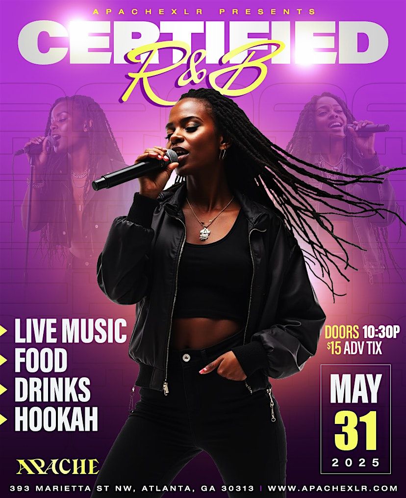 Get ready for an unforgettable night of certified R&B vibes! Join us for an exclusive live R&B experience highlighting music performances from your favorite artists. Whether you're here to vibe, connect, or simply enjoy the grown and sexy atmosphere, this is the perfect event to unwind. Don’t miss this chance to be certified —grab your tickets now!!!