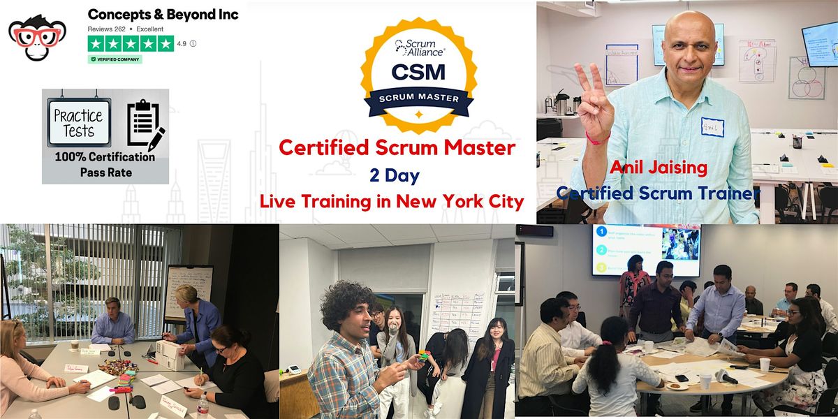 "I recently obtained the Certified Scrum Master (CSM) certification from Scrum Alliance. My class was a great mix of professionals who joined me in collaborative discussions to learn Scrum fundamentals. Concepts and Beyond was the training organization and the trainer was Anil Jaising. Anil is a Certified Scrum Trainer and seamlessly helped us learn about Scrum within an engaging and fun environment. " -- David Cohn
