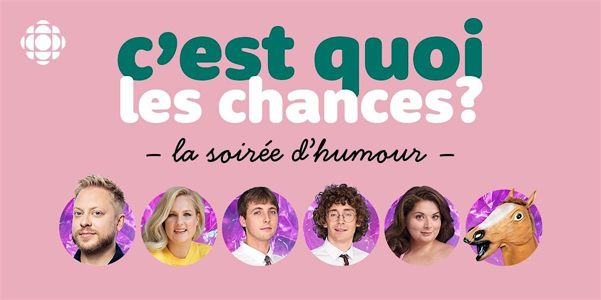 On poursuit la soirée avec Guillaume Lambert et ses invités pour l'enregistrement d'un épisode spécial du balado «C'est quoi les chances», de Radio-Canada OHdio. Fidèle à sa fascination pour les faits divers les plus improbables, Guillaume nous convie à une soirée haute en couleur en compagnie de Simon et Tyler, Marie-Soleil Dion et Michelle Desrochers. Au menu : numéros d'humour originaux, histoires loufoques, quiz interactif, surprises sur scène, moments délirants et même... un bruiteur masqué.