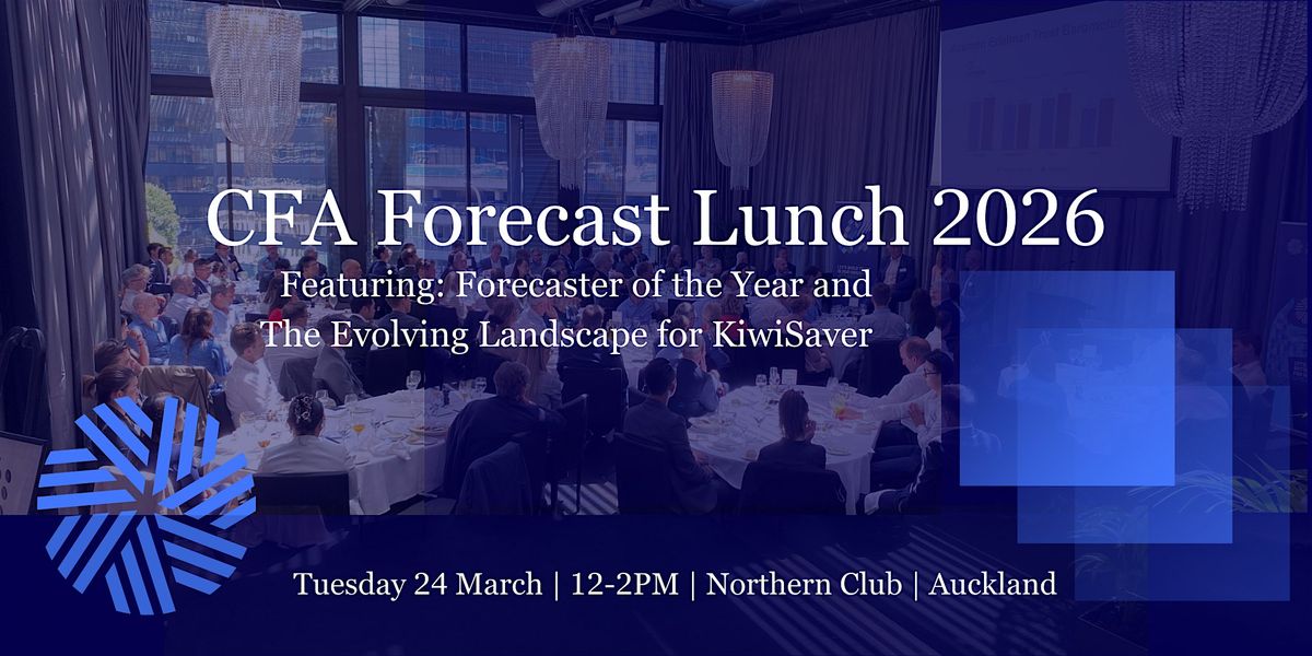 We’re pleased to invite you to the CFA Forecast Lunch—CFA Society NZ’s annual signature event—a highlight on the investment industry calendar. It’s a unique opportunity to connect with peers over lunch and engage with thought leaders on the trends shaping markets and portfolios.