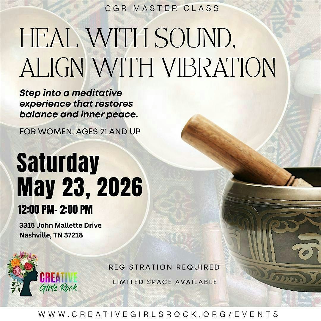 Heal with Sound, Align with Vibration is a restorative masterclass designed for women ages 21 and up to reconnect, reset, and realign through the power of sound and intentional stillness.