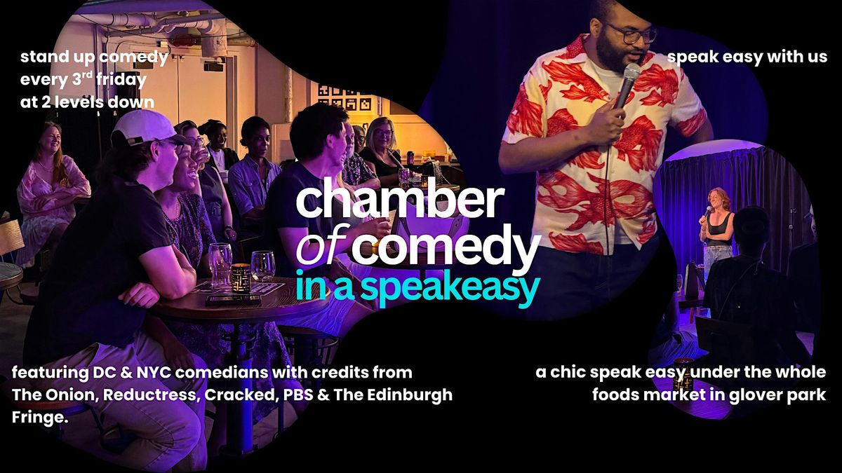 Step into a hidden speakeasy beneath the whole foods market in glover park for a night of stand up comedy featuring a stellar group comics from DC and NYC.