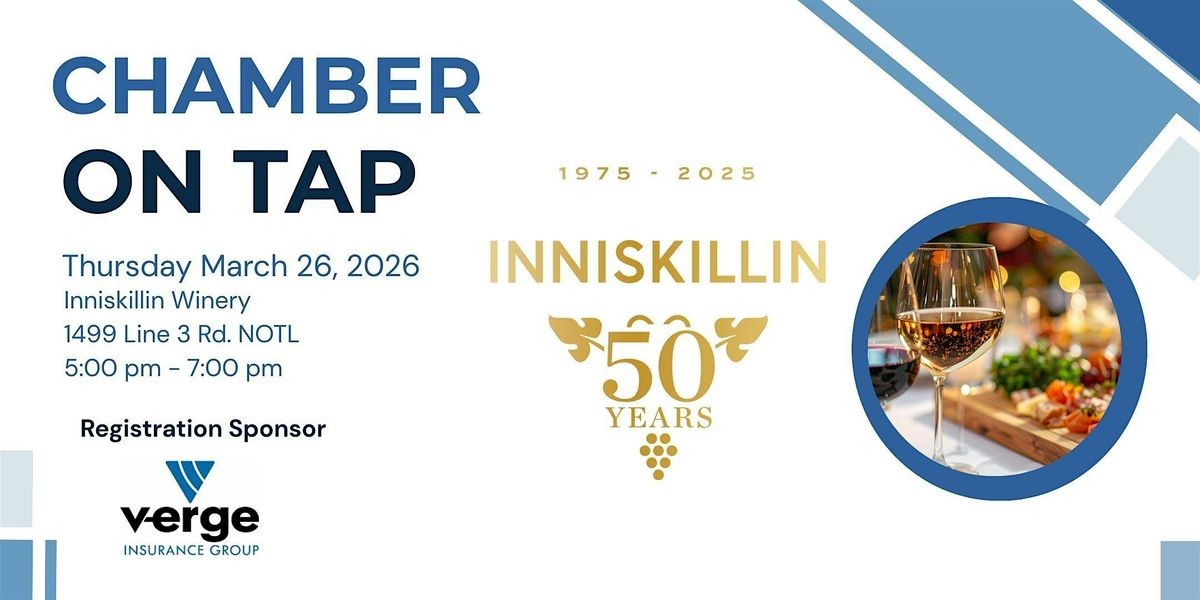 Join us in person for a fun and casual evening at Inniskillin Winery! It's the perfect chance to connect with fellow chamber members, enjoy some great wine, and soak in the beautiful winery vibes. Whether you're looking to network or just have a good time, this event’s got you covered. Don’t miss out on good chats, tasty sips, and a relaxed atmosphere. See you there.