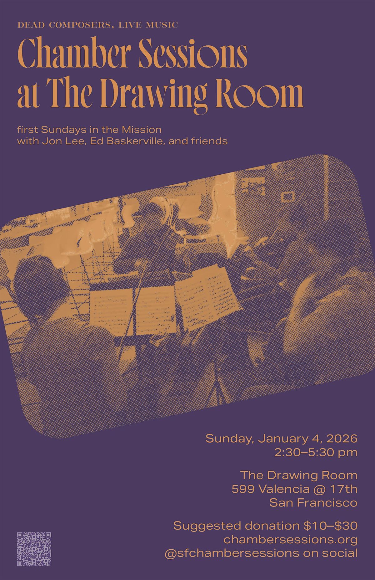 Jon Lee, Ed Baskerville, and a wonderful line-up of local musicians will be setting up in our Drawing Room Valencia Street space to bring you all a series of First Sunday Chamber Music shows. A reminder that the visual and performing arts need to support each other. Wander the gallery and listen to the sounds of our Mission musicians. Suggested donations are $10-30 to help support our work! More info at chambersessions.org.