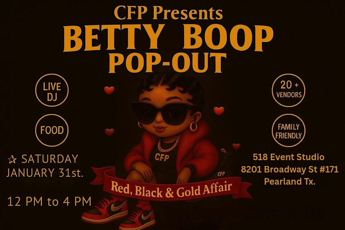 Chambers Family Productions presents Betty Boop Pop-Out – Red, Black & Gold Affair, a stylish shopping experience filled with glamour, community, and grown vibes. Guests will enjoy a curated lineup of vendors, exciting photo opportunities, and live DJ entertainment throughout the event.