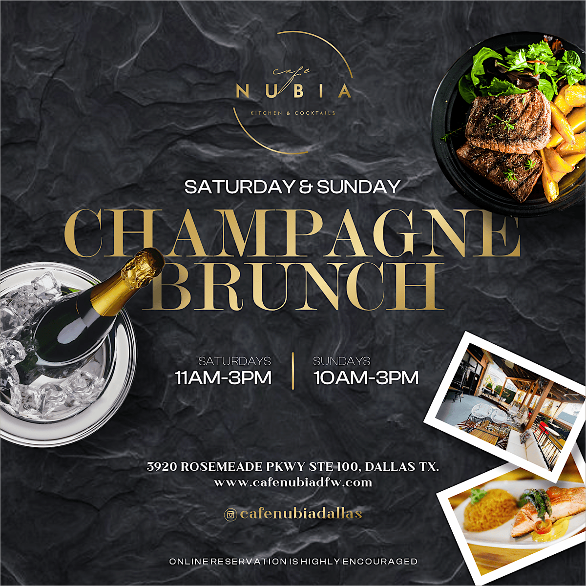Join us for Sahara Brunch every Saturday and Sunday at Cafe Nubia from 11am to 4pm. Dive into a brunch experience filled with great vibes, incredible sounds, and premium hookahs available on both our cozy indoor space and inviting outdoor patio. This isn't a party; it's the epitome of brunch culture and community in Dallas.