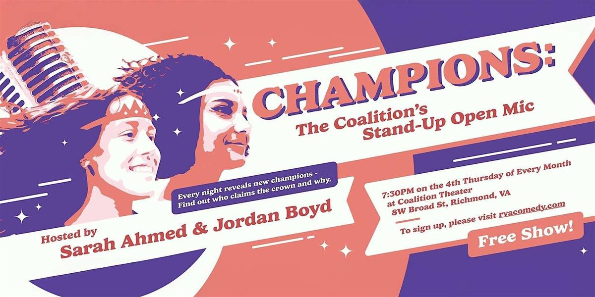 FOR THOSE WHO WANT TO PERFORM: CHAMPIONS OPEN MIC IS NOW A LOTTERY SIGN UP PROCESS! 12 pre-sign ups are available through THIS FORM. You will know if you are selected for pre sign ups ONE WEEK BEFORE THE SHOW. If you ARE selected for PRE-SIGN UPS, you must reply to our email within 24 hours that you are available, or else the spot will be given to someone else. If you do not receive an email, it means you were not selected for pre-sign ups. If you do not make it this time, we highly encourage you to re-submit for future months.