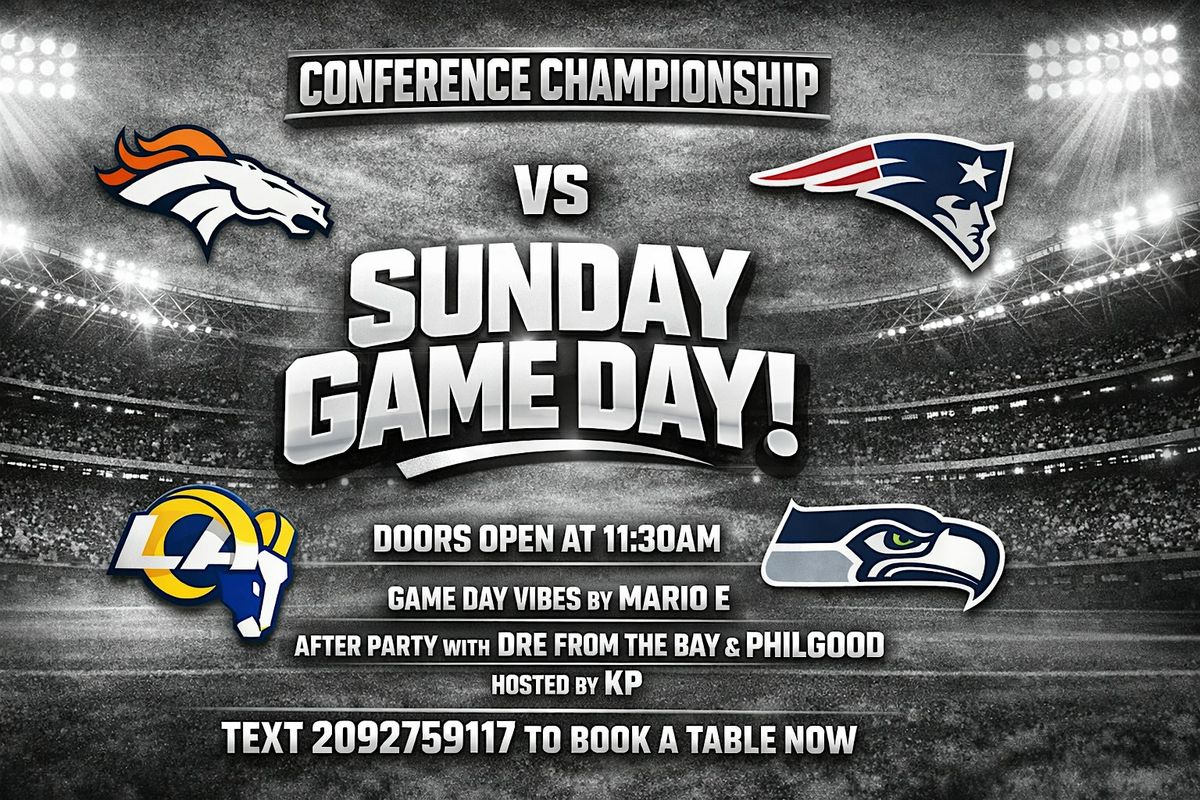 Doors open early at 11:30AM so you can lock in your spot before kickoff. Both championship games will be shown with sound on, full bar service, and game-day energy from start to finish.