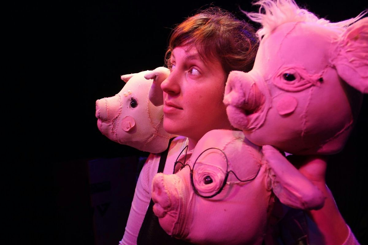 La obra reinventa el clásico cuento de los tres chanchitos, (los tres cerditos) donde las hermanas crean un plan para enfrentar al lobo, ofreciendo un final diferente y sin palabras.