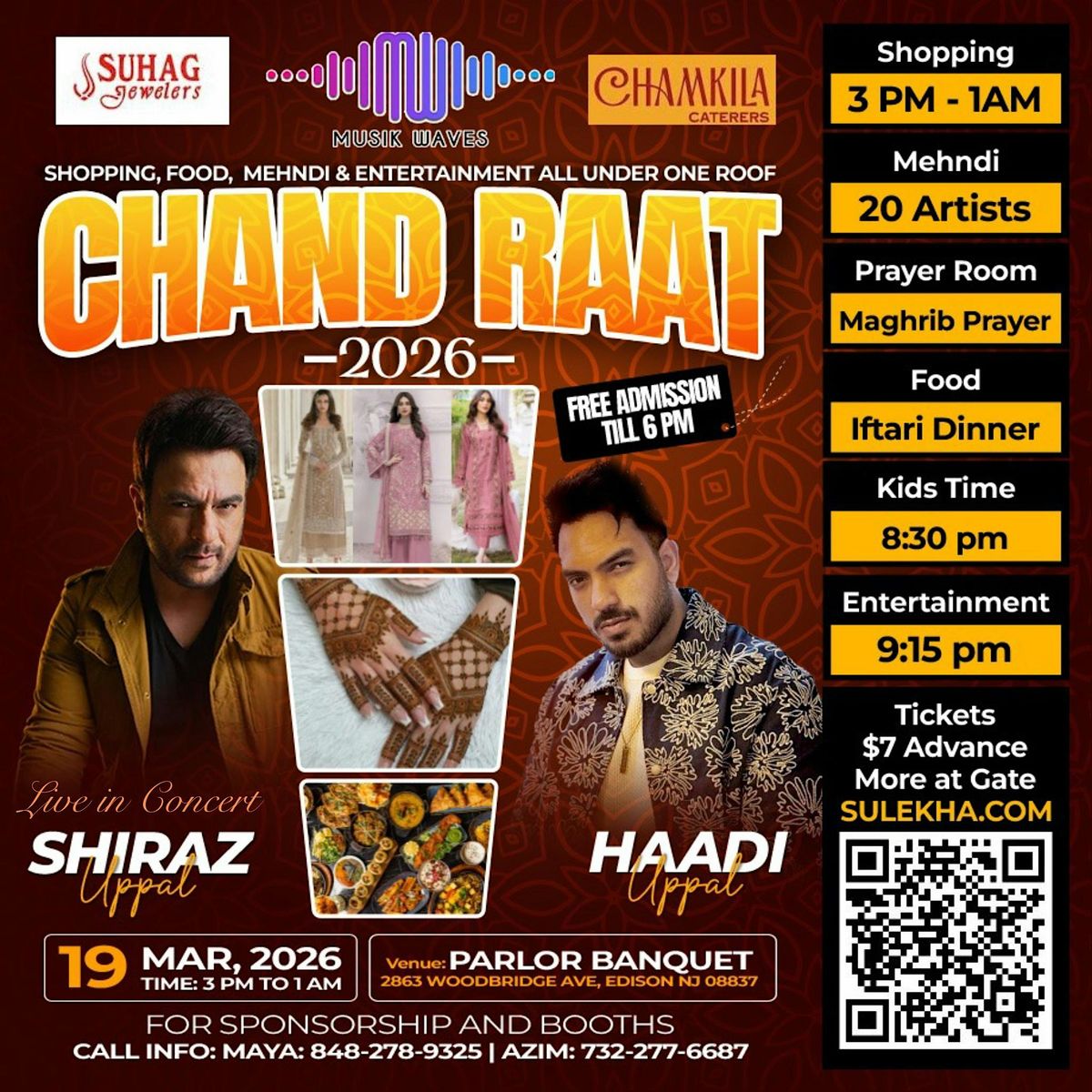 Official Chand Raat of NJ comes back with over 50 vendors of clothes and jewelry for Eid shopping. 20 mehndi artists, food & entertainment
