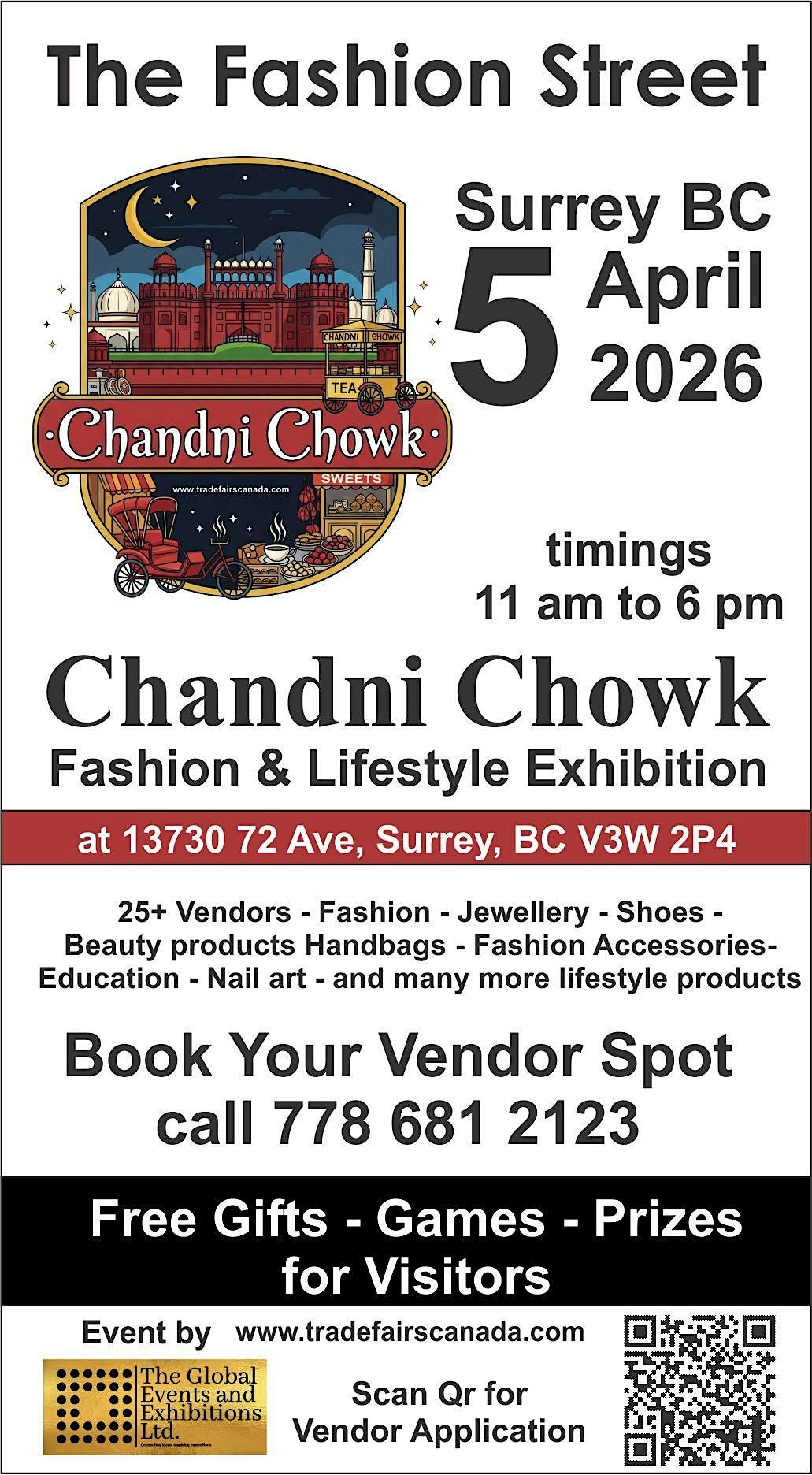 #ChandniChowkExpo #VendorCall #SurreyEvents #VancouverVendors #ShopLocalCanada #FashionExhibition #LifestyleExpo #PunjabiEvents #SurreyBC #PopUpShop #SmallBusinessBC #WomenEntrepreneurs #Exhibition2026