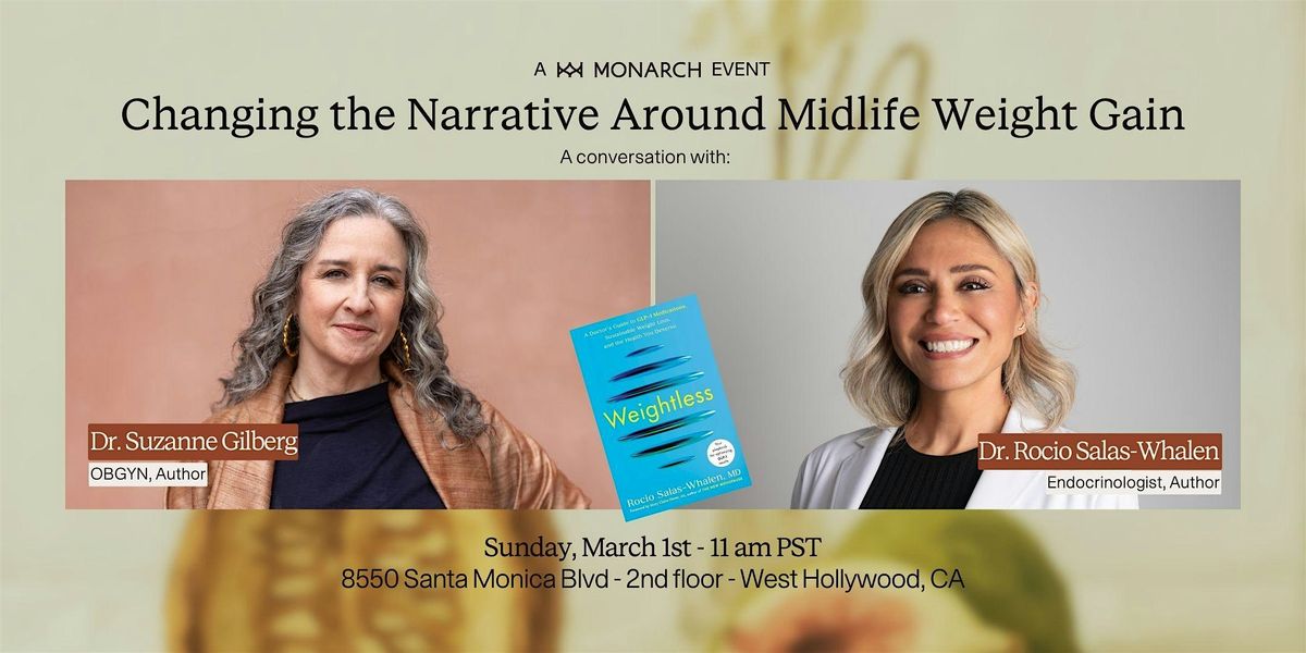 Join us for an intimate, thought-provoking fireside chat with Dr. Rocio Salas-Whalen, board-certified endocrinologist, obesity medicine specialist, and author of Weightless, hosted by Dr. Suzanne Gilberg, Chief Clinical Officer of Monarch and board-certified OB/GYN.
