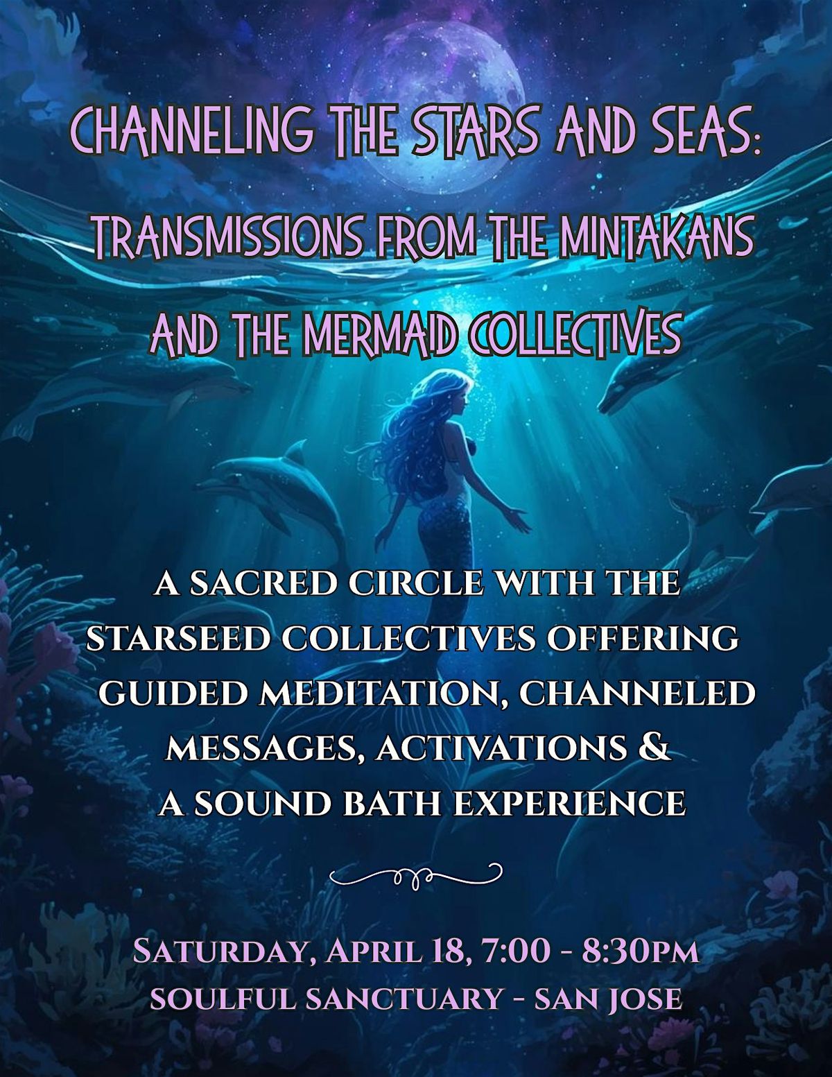 Join us for a sacred evening of guided meditation, live channeling, and immersive sound healing—connecting to the wisdom of star and water consciousness for emotional healing, intuition, and heart expansion.