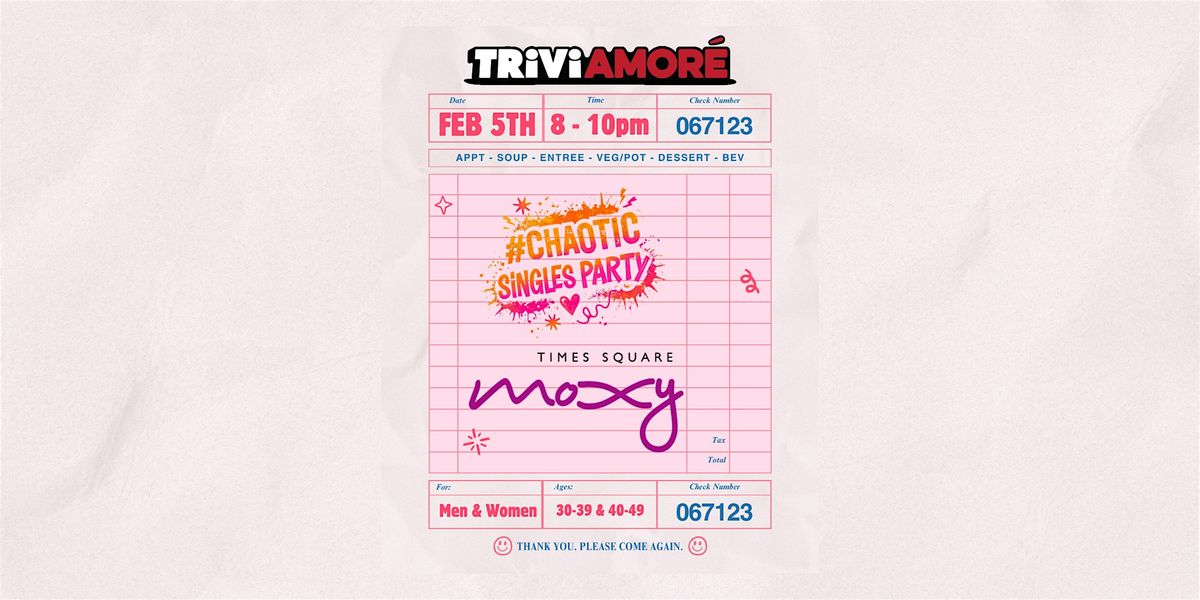TriviAmoré is partnering with Chaotic Singles Party to help you stop swiping and start dating! This event is for Men and Women, ages 30-39 and 40-49.