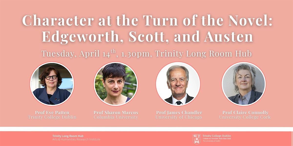 Join Trinity’s Professor of English, Eve Patten, for a discussion on literary character formation with Professor James Chandler, William B. Ogden Distinguished Service Professor in the Department of English, Department of Cinema and Media Studies at the University of Chicago; Professor Sharon Marcus, Orlando Harriman Professor of English and Comparative Literature at Columbia University; and Professor Claire Connolly, Chair of Modern English at University College Cork.