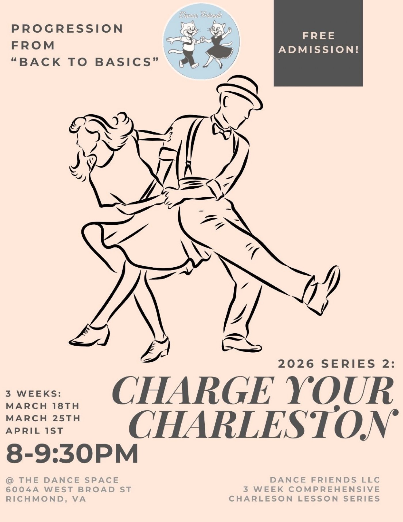 It's time to kick it up a notch! Starting on March 18th the Dance Friends VA will be showing you the first steps into Charleston Swing.
