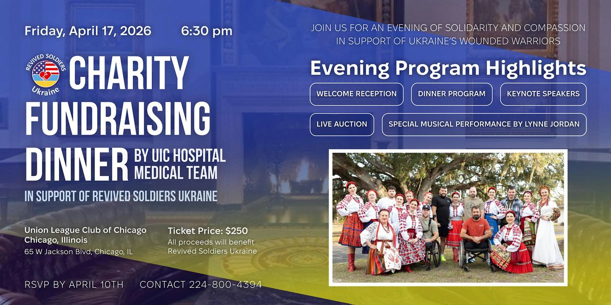 You are invited to a special Fundraising Dinner in support of severely wounded Ukrainian soldiers receiving life-saving medical treatment, rehabilitation, and prosthetics at University of Illinois-Chicago Hospital, and other medical facilities in the United States.