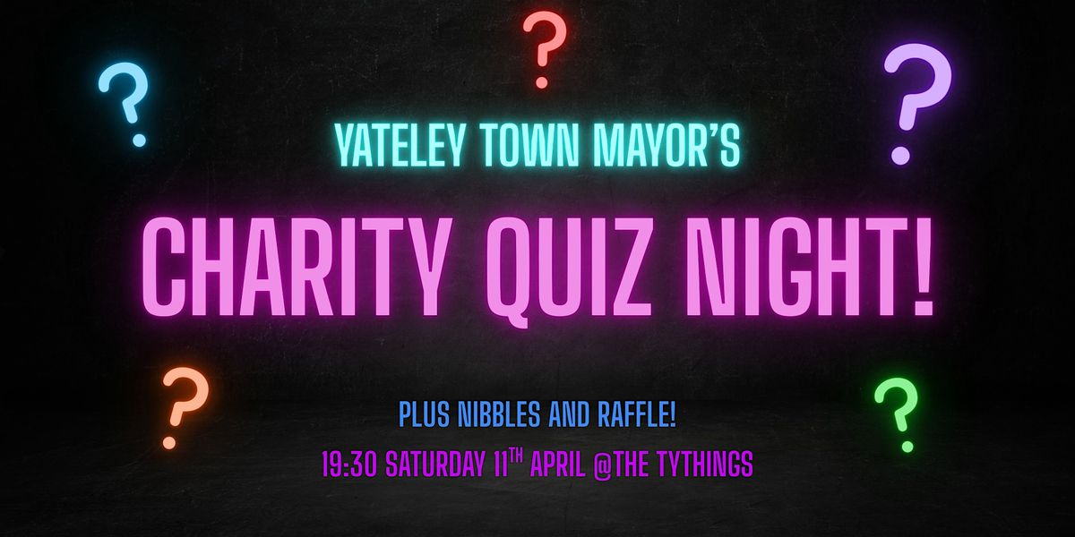 The Mayor's Charity Quiz night is supporting Vision 4 Youth, the Daisy Chain Cafe, and Cornerstone Counselling, three amazing causes in Yateley! The evening will include a quiz, nibbles, and soft drinks, plus a raffle. Please feel free to bring your own alcoholic drinks. All welcome! Teams can be up to 6 adults and you can enter as a full team or individually and link up with others on the night if you wish.