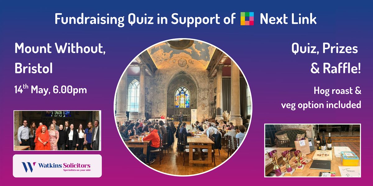 Join us for an evening of quizzing, great food and fundraising in support of Next Link, a leading domestic abuse charity supporting individuals and families across Bristol and the surrounding areas.