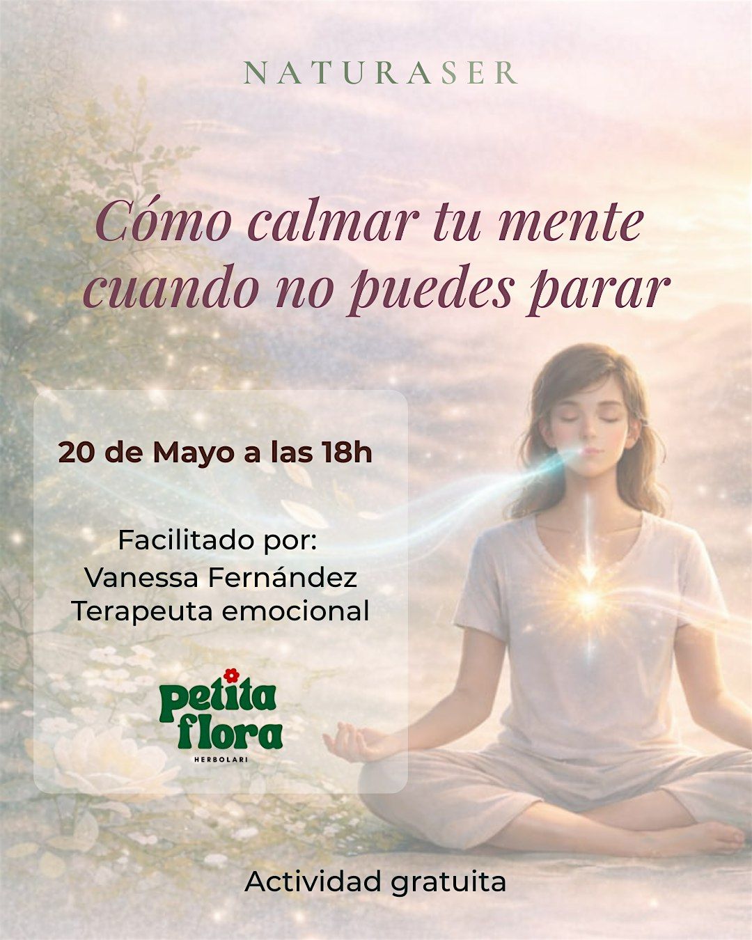 En esta sesión gratuita aprenderás a calmar tu sistema desde dentro, de forma natural y sin complicarte la vida. Saldrás con herramientas reales que puedes usar desde ese mismo día: