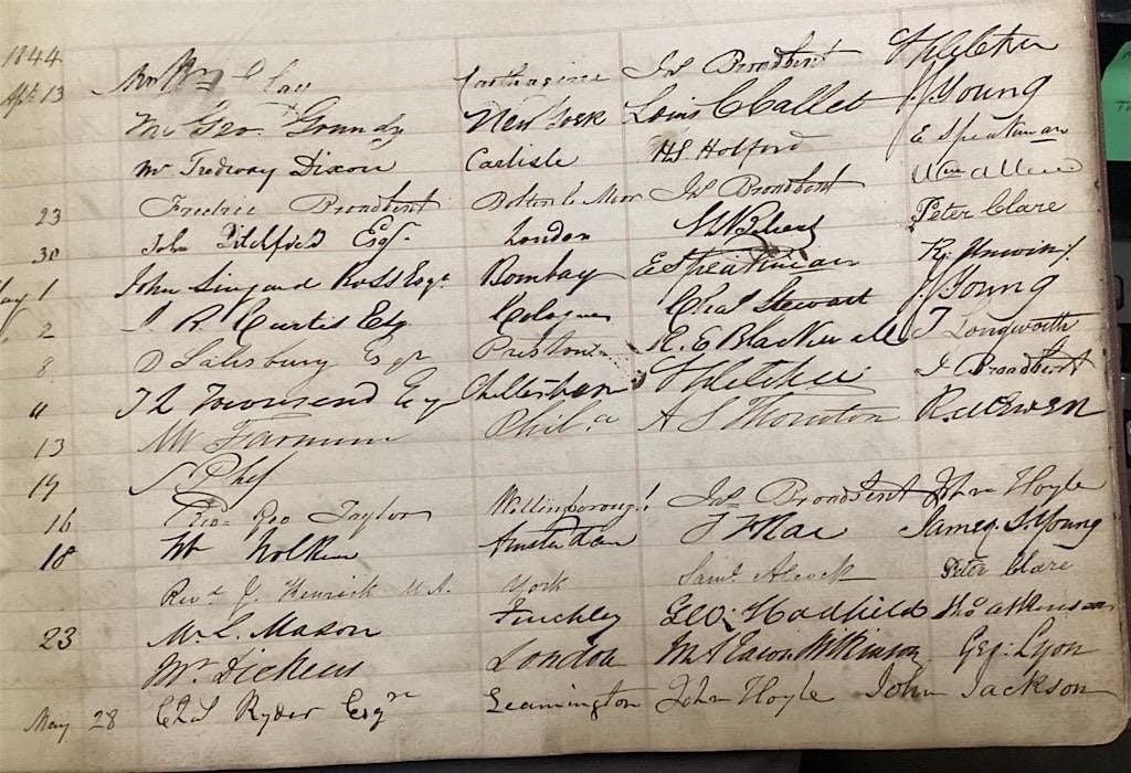 There will be a chance to see some first editions of Dickens' books and his sign in in the Portico Stranger's Book. This is a fundraising activity for Portico Reunited.