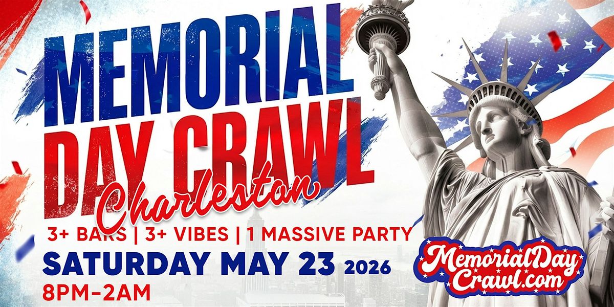 This Memorial Day weekend, Charleston is the place to be for a huge night of bar hopping, drinks, and nonstop party energy. Join us on Saturday, May 23rd, 2026 for the ultimate Memorial Day Bar Crawl as we take over some of the city’s hottest bars and nightlife spots for a celebration to kick off the long weekend in style. 🍻