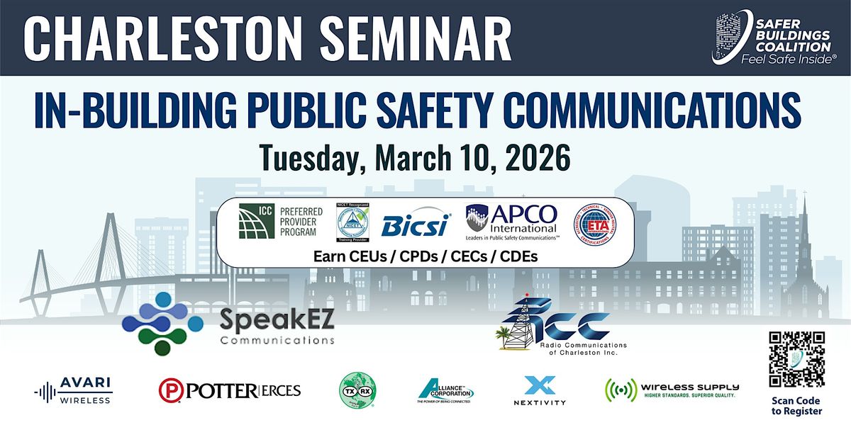 Hosted by Safer Buildings Coalition leadership, with subject experts from our sponsor members, this interactive seminar is based on model codes regarding in-building public safety communications systems.