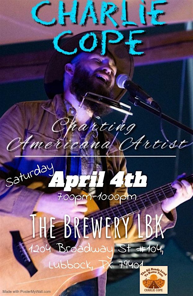 Live music that fits the room. Charlie Cope brings an intimate acoustic show to The Brewery LBK in Lubbock on April 4, blending original songs with stories that pull you in and donβt let go.