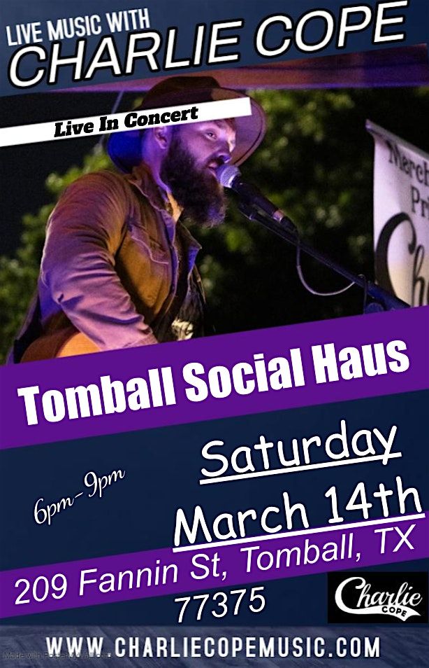 An evening of original music and honest storytelling. Charlie Cope performs live at Tomball Social Haus in Tomball on March 14 for a show designed to meet the moment.