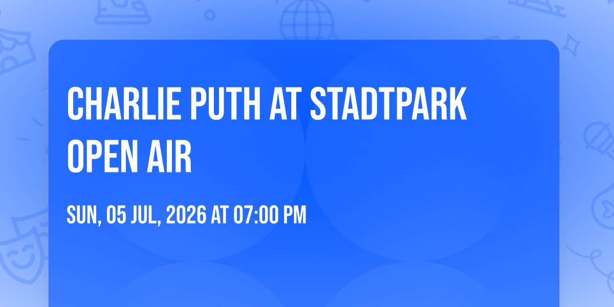🎉 Welcome to Charlie Puth at Stadtpark Open Air, where dreams come alive and possibilities are endless! 🏛️ Join us at Stadtpark Open Air in the heart of Hamburg, HH for an event that defies expectations. 📅 On July 5th, 2026 at 07:00 PM, be part of something truly extraordinary as we bring together innovation, entertainment, and pure magic. ✨ Every aspect has been carefully designed to ensure an unforgettable experience for all our guests. Whether you're seeking adventure, inspiration, or simply a break from the ordinary, this event promises to deliver beyond your wildest dreams. 🎊 Prepare for a journey into the extraordinary!