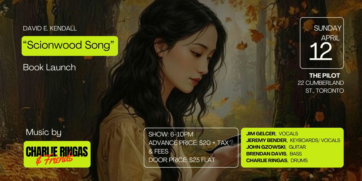 Come hang out for the launch of David E. Kendall's new book, "Scionwood Song"! It’s all happening on Sunday, April 12, at The Pilot in Toronto.The show runs from 6:00 PM to 10:00 PM, featuring live music from Charlie Ringas & Friends. It's going to be a great night with a full band:Jim Gelcer on vocals. Jeremy Bender on keys and vocals, John Gzowski on guitar, Brendan Davis on bass & Charlie Ringas on drums.
