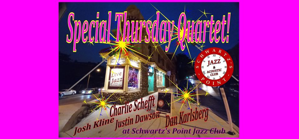 Wow! What a treat we have for you this Thursday! A full Quartet on Thursday - and full of excellent musicians, including Charlie Shefft from NYC! Also includes:Josh Kline in tenor sax, Justin Dawson on bass, & Dan Karlsberg on piano!! You won't wanna miss this very special show! The Point is a stellar after-dinner destination - no reason to head home just yet. Drop on in!