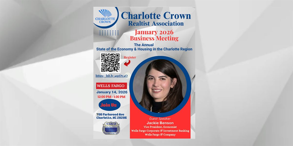 Join Charlotte Crown's January 2026 Business Meeting on the State of the Economy & Housing with Wells Fargo Economist Jackie Benson