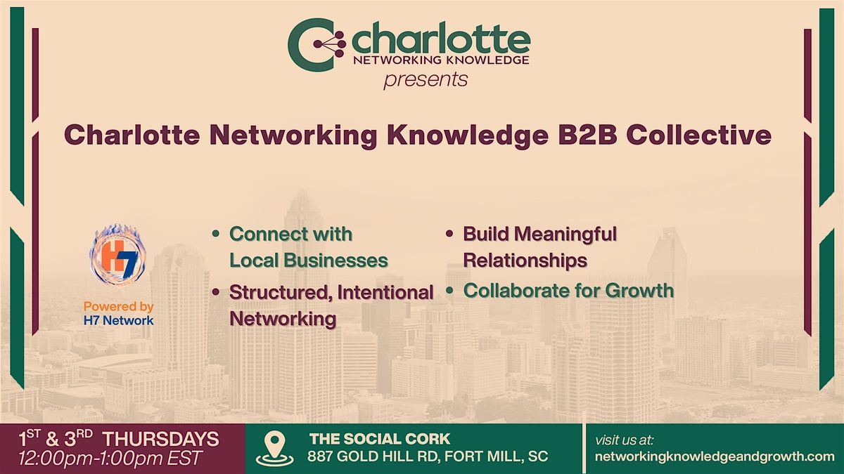 Founded by Dana Alfirevic, Charlotte Networking Knowledge is a B2B-focused networking community powered by H7 Network. Our mission is to help business owners build intentional, high-value relationships that lead to long-term growth, strategic partnerships, and measurable results.