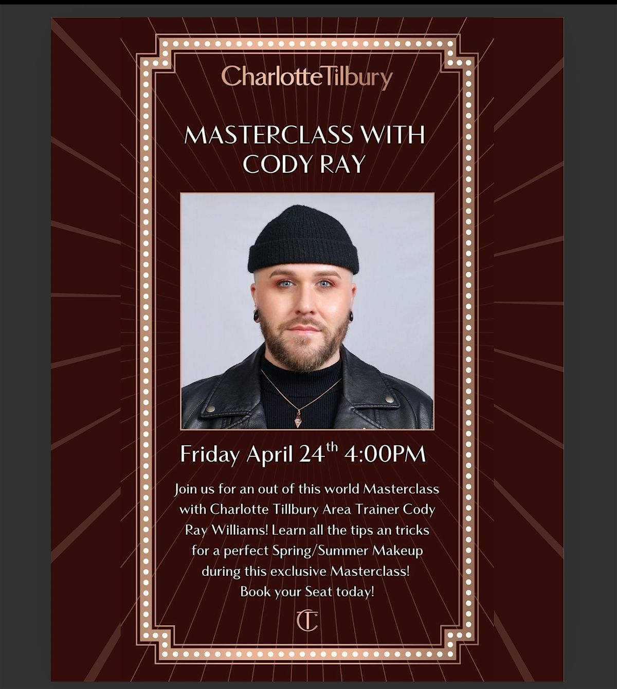 Get ready to glow up with our in-person Charlotte Tilbury Spring Refresh Masterclass! Dive into the latest spring makeup trends, learn expert tips, and discover how to create that flawless fresh-faced look. Whether you're a makeup newbie or a beauty pro, this session is packed with fun, creativity, and all the glam vibes you need to refresh your routine. Don’t miss out on this chance to shine bright this spring!