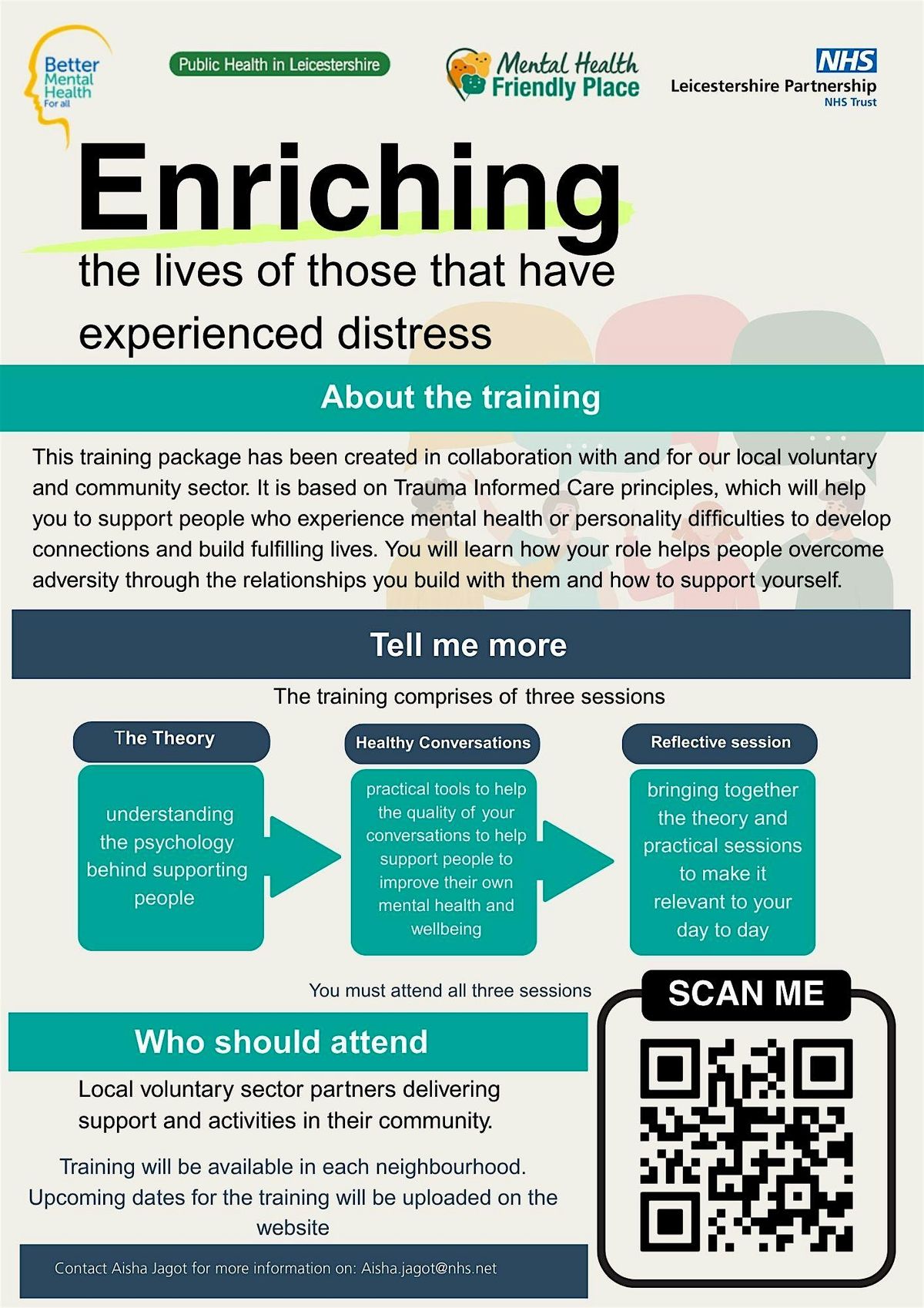 The first series of the training will be open for those working in the voluntary and community sector in the Charnwood area. If you have any questions please contact Aisha Jagot - [email protected]