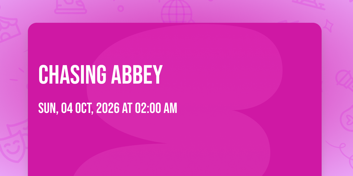 📍 Location: 39.7533, -104.993🌟 Step into a world of wonder at Chasing Abbey, where extraordinary moments await! 🏛️ Located at Marquis Theater - Denver in dynamic Denver, CO, this event will become the talk of the town. 📅 Join us on October 4th, 2026 at 02:00 AM for a celebration that defies the ordinary. ✨ This curated experience brings together the best of entertainment, culture, and community spirit. Every detail has been thoughtfully planned to ensure an unforgettable experience for all our guests. 🎯 Take advantage of this opportunity to be part of something special. 🎊 Early registration is recommended as space is limited!