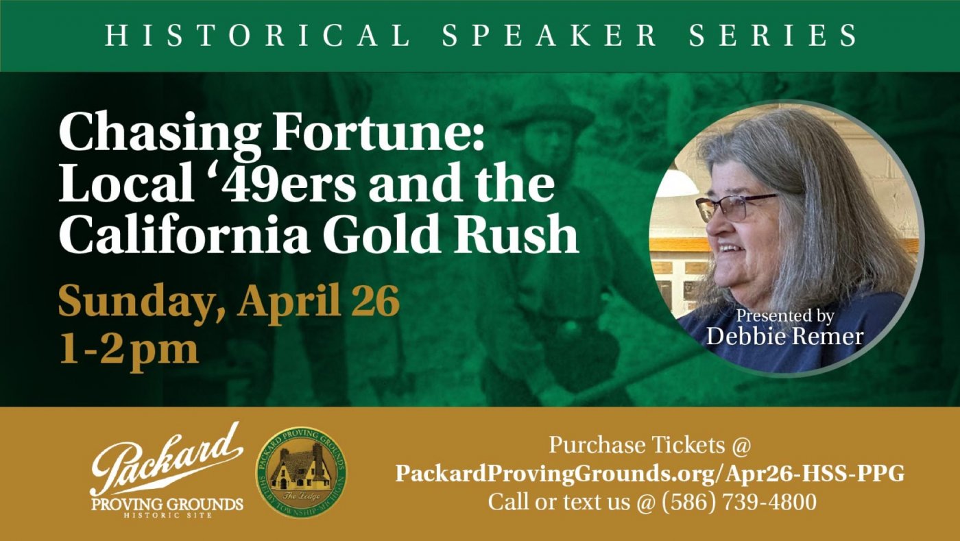 The California Gold Rush sparked a movement that reached far beyond the West. This Historical Speaker Series program explores how local residents became part of the ‘49er migration, tracing their journeys from Michigan to California and examining what they encountered upon arrival. Presented by local historian Debbie Remer.