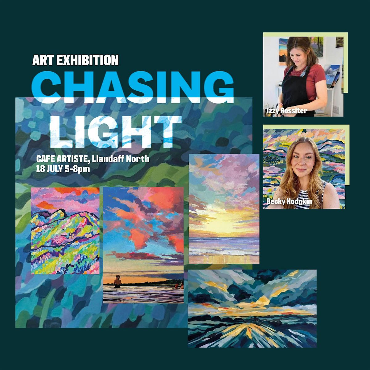 Chasing Light is a joint exhibition by two Cardiff-based artists — Izzy Rossiter and Becky Hodgkin — showcasing brand new work created specifically for this show.