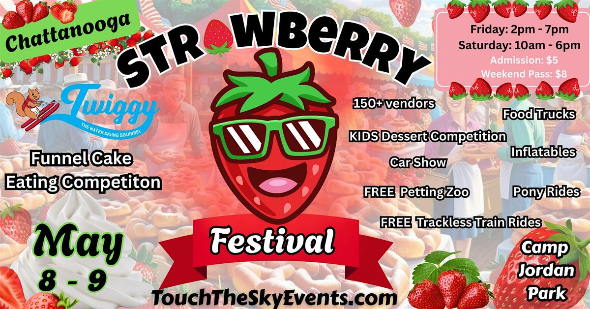 - Shop over 150 vendors, food trucks, Twiggy the water-skiing squirrel, ultimate funnel cake eating competition sponsored by Freaky Funnels, FREE train rides, FREE petting zoo, inflatables, animal encounters, pony rides, fresh strawberries from Smith Perry's Berries, Lindas Produce, Green Acres, and more!