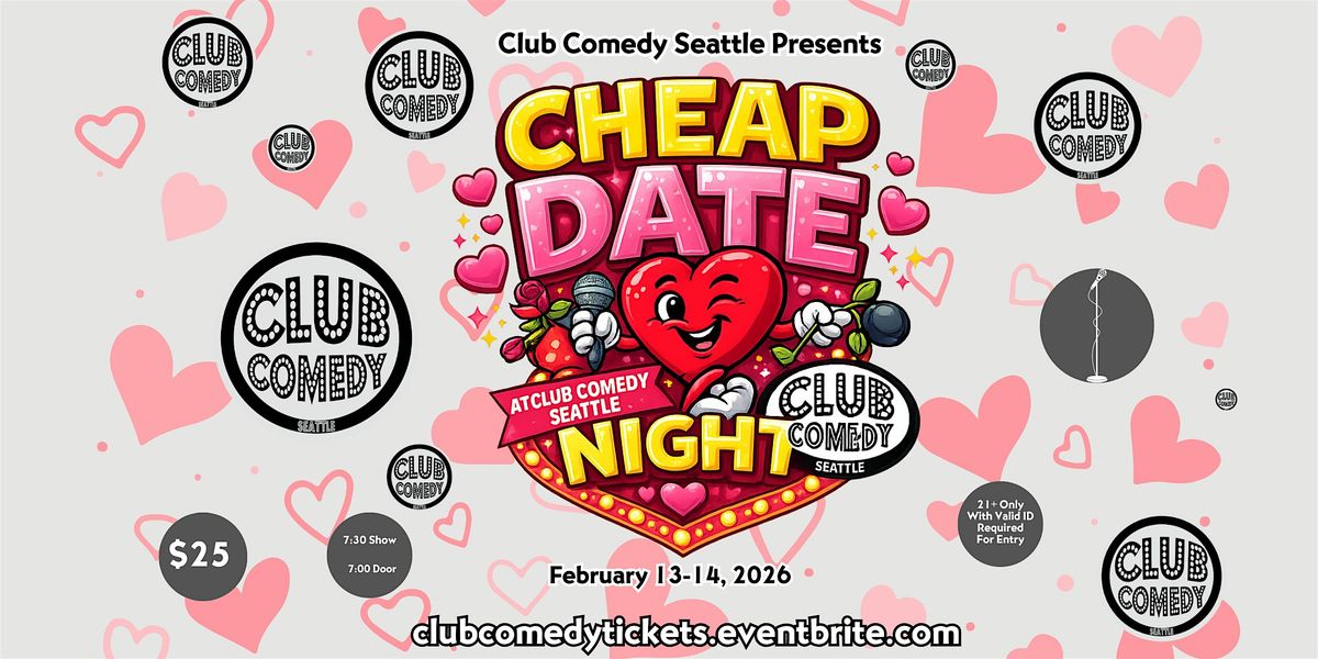 For the St. Valentine's Day Weekend we are making it super easy to treat yourself and your date to a Cheap Date Night full of laughs and fun at Club Comedy Seattle. Your ticket includes an amazing stand-up showcase and one glass of champagne or one well drink or one beer.
