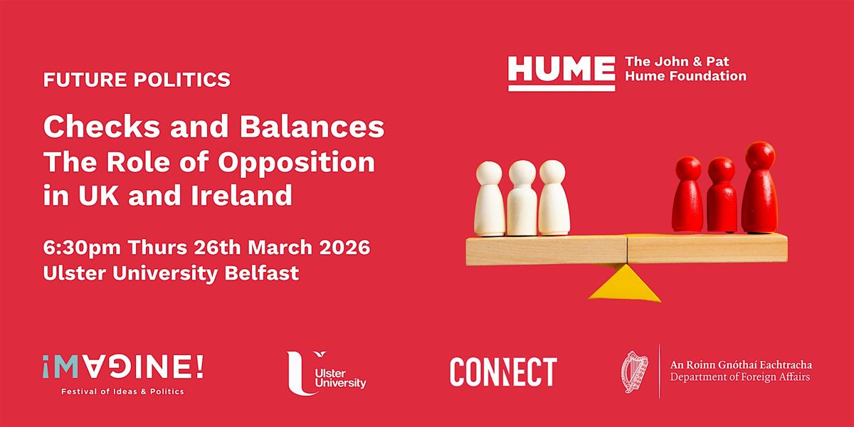 We are hosting a Future Politics discussion on ‘Checks and Balances – the Role of Opposition in UK and Ireland’ at 6.30pm on Thursday March 26, 2026, in Belfast, as part of the Imagine Festival, a showcase for the discussion of contemporary political and societal issues.
