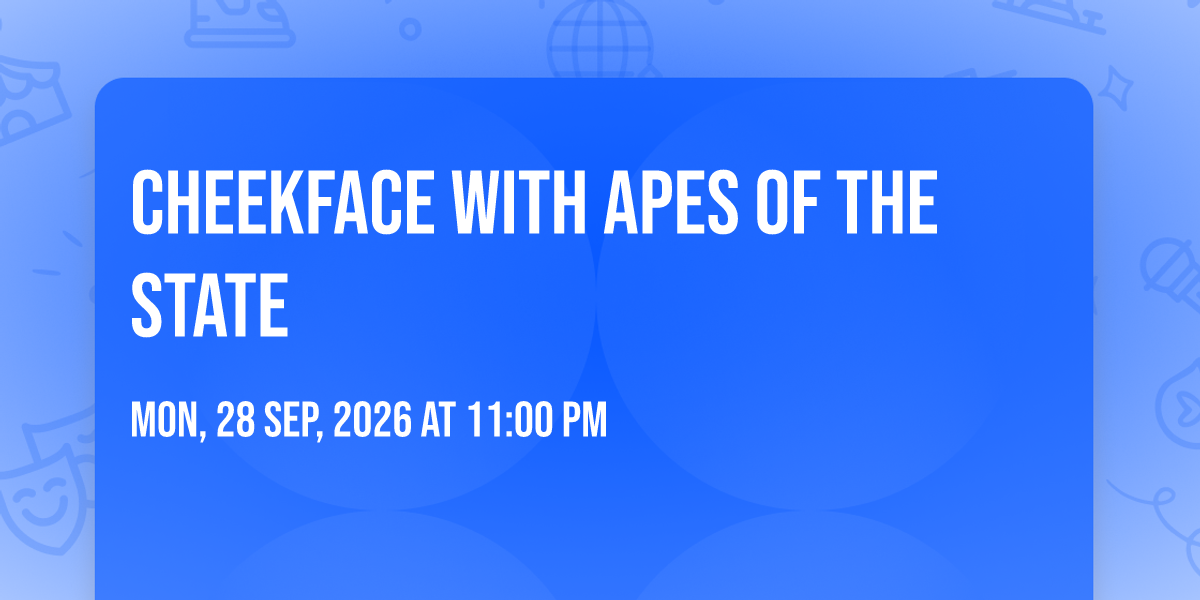 📍 Location: 43.6554, -79.4194🎉 Welcome to Cheekface with Apes of the State, where the impossible becomes possible and dreams take flight! 🏛️ Join us at The Mod Club in the heart of Toronto, ON for an event that will redefine your expectations. 📅 On September 28th, 2026 at 11:00 PM, witness the transformation of space and time into something truly magical. ✨ It's a curated experience combining the best of innovation, entertainment, and community spirit, creating moments that will be remembered for years to come. Whether you're a first-time visitor or a seasoned enthusiast, prepare to be amazed. 🎊 Book now to ensure your place in this unforgettable experience!