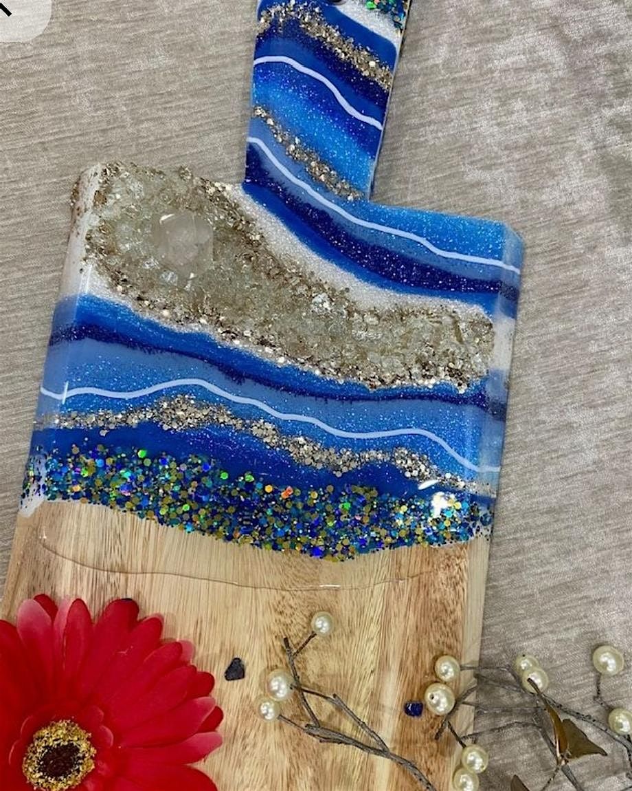 Where you'll transform a premium wooden board into a fanastic masterpiece.Choose from a wide array of micas,glitters,and differant color of small rocks to make a board that matches your home decor.