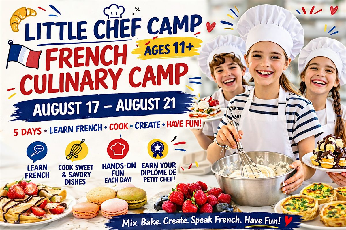Join Chef Camille for an unforgettable week of French cooking, where teens ages 12 and up will master both sweet and savory recipes, learn real kitchen skills, and discover French language and culture all in a fun, hands-on environment!
