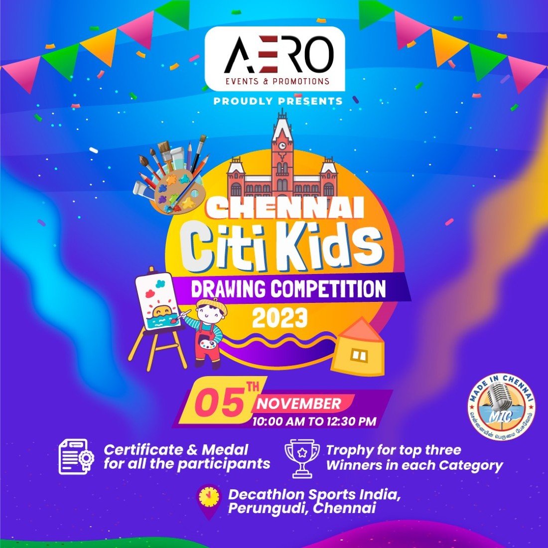 Aero Events & Promotions presents “Chennai CITI Kids Drawing Competition" at Decathlon Sports India Perungudi Chennai for kids age from 3yrs to 13yrs
