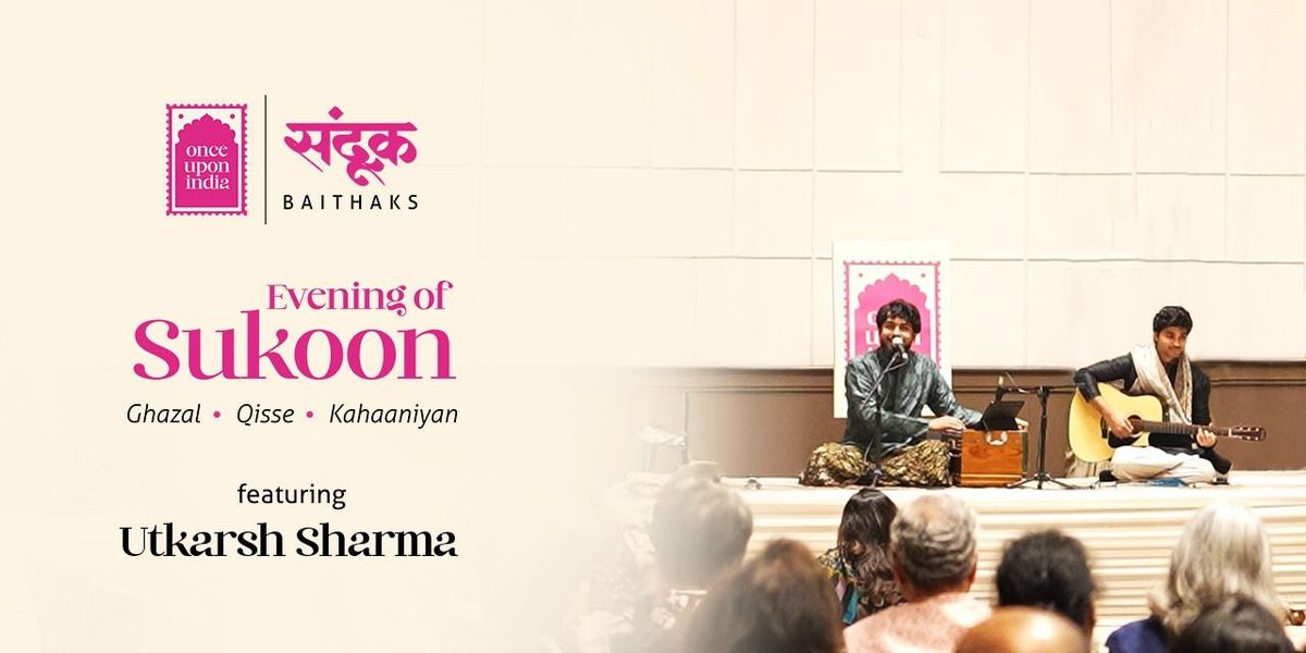 Join us for an Evening of Sukoon – with music that floods you with so many feelings yet stills you in the same breath. This baithak brings ghazals of Jagjit Singh, Kishore Kumar melodies and Gulzar’s poetry, by Utkarsh Sharma and his Himachali warmth, Sarangi, Tabla and Harmonium.